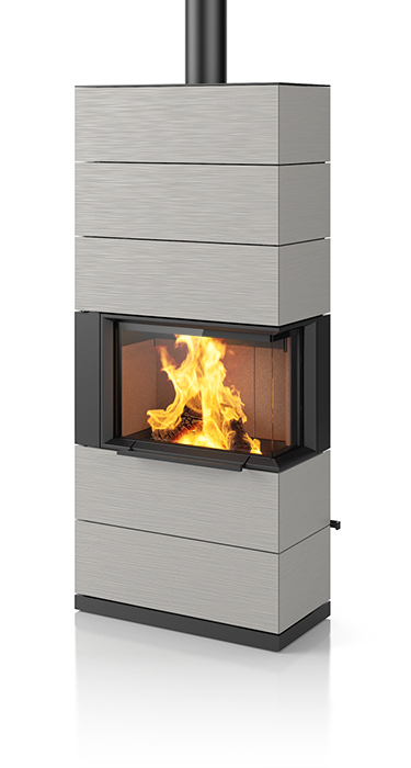 PADUA 160, Houtopslag module links met aansluit rookgaskanaal zijkant en aansluiting voor luchttoevoer